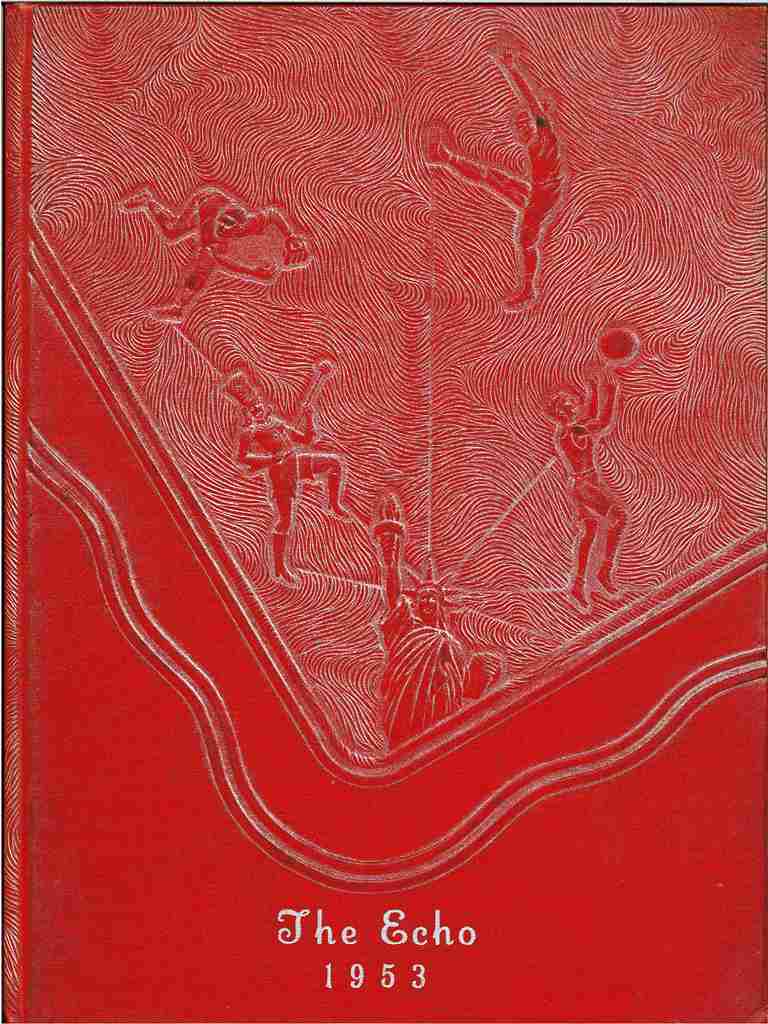1953 "The Echo" yearbook from Norwalk High School. Pages in good condition; no signatures. Binding in good condition. Hardcover; cover in good condition with slight edge wear.