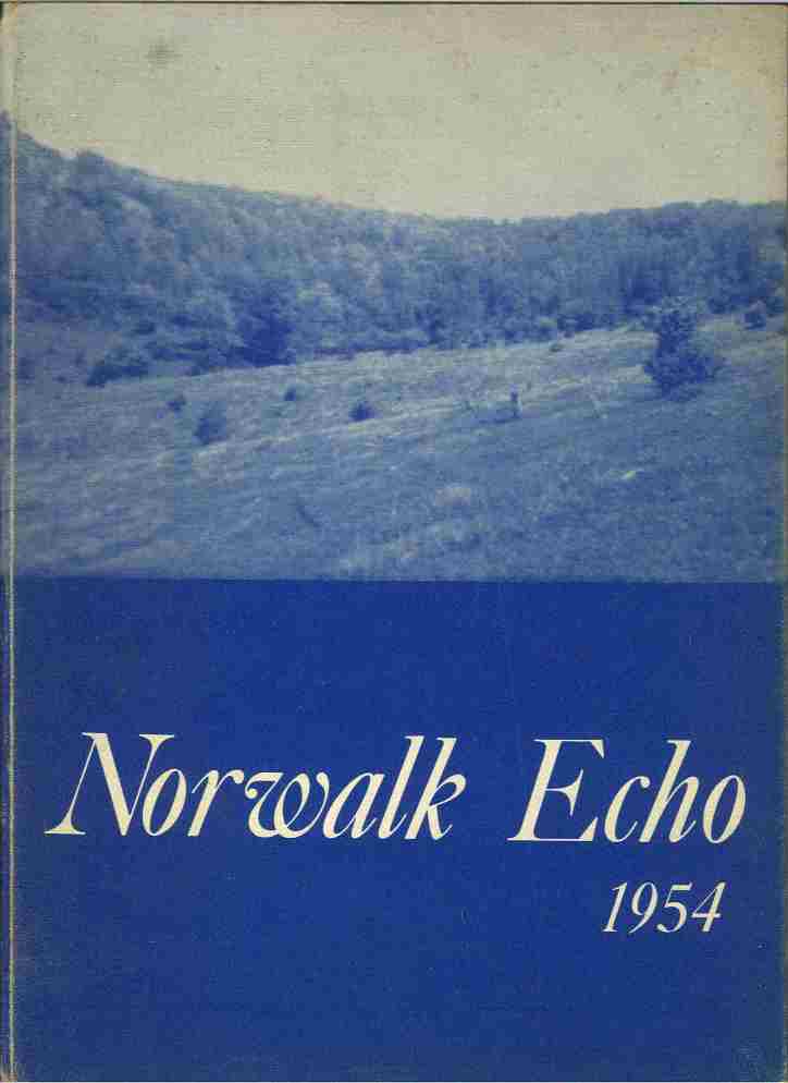 1954 "The Echo" yearbook from Norwalk High School. Pages in fair condition; signatures throughout. Loose binding. Hardcover; cover in good condition with slight edge wear and staining.