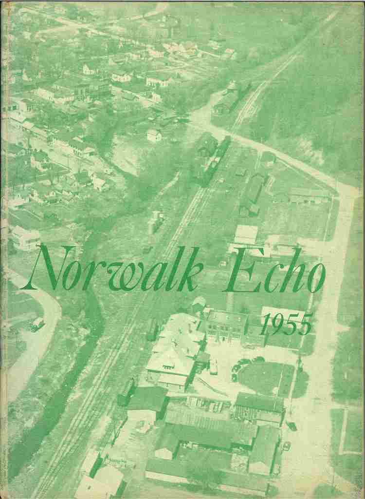 1955 "The Echo" yearbook from Norwalk High School. Pages in good condition; signatures throughout. Loose binding. Hardcover; cover in good condition with slight edge wear.